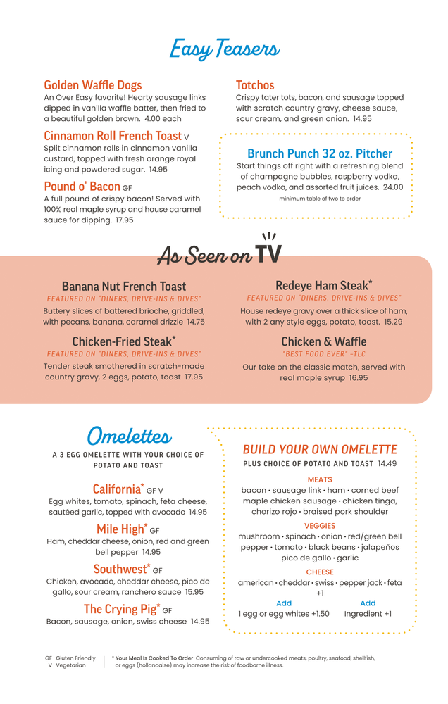 Welcome to Over Easy- Queen Creek, an American breakfast and brunch gem nestled in Queen Creek, AZ. This vibrant spot is not just a feast for your palate but also offers a delightful experience, catering to various needs such as delivery, takeout, and outdoor seating.